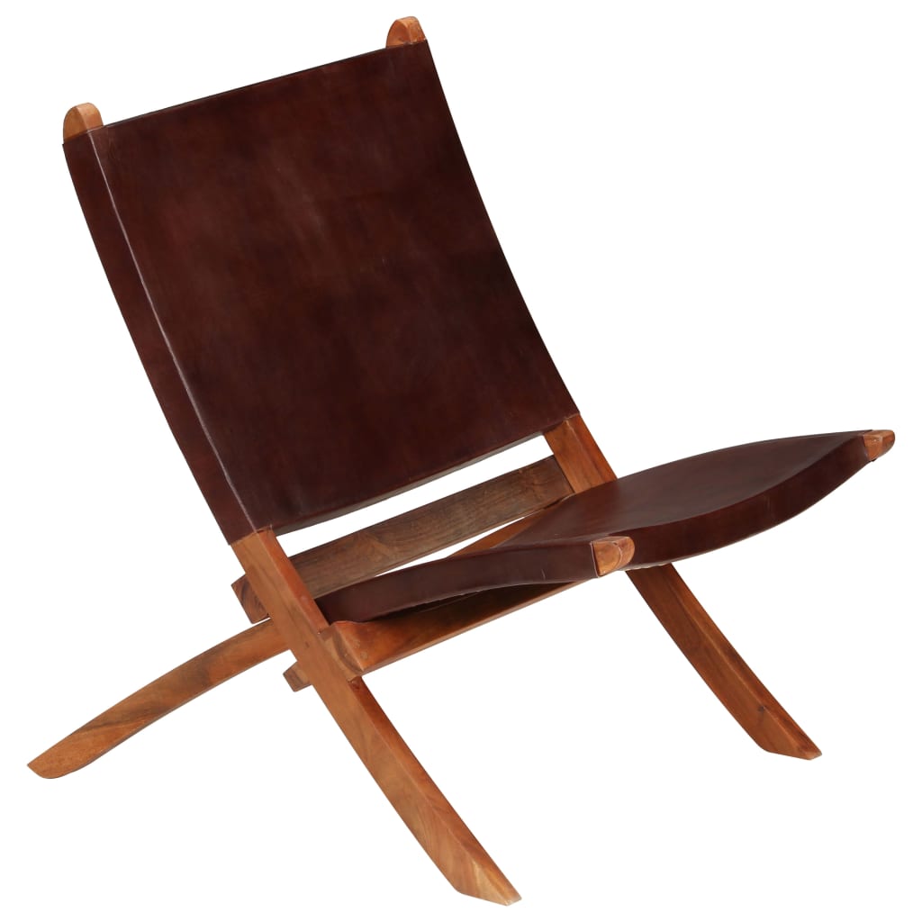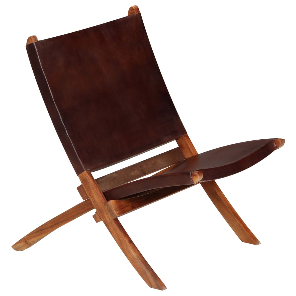 Kokoontaittuva nojatuoli ruskea aito nahka