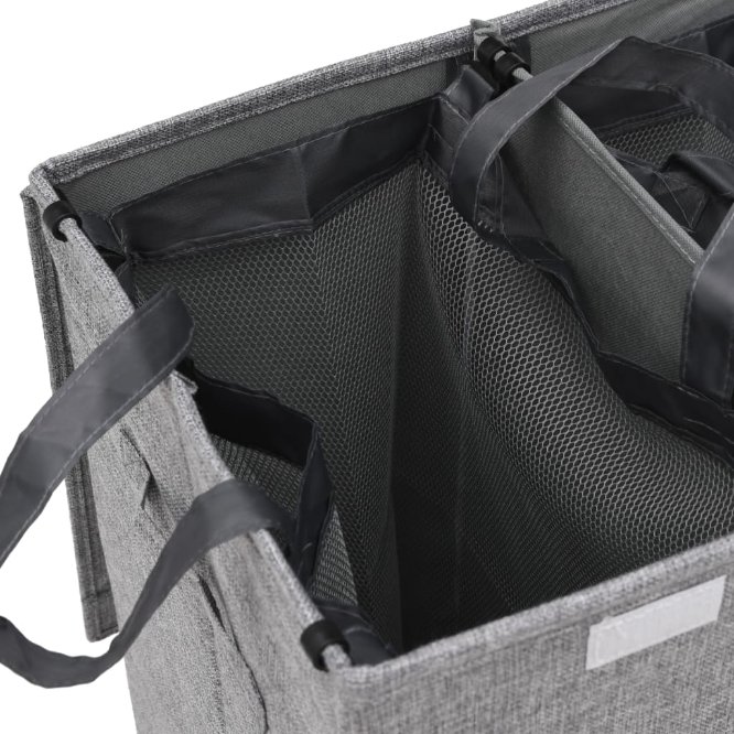 • 2-osainen säilytystila: Tässä pesukorissa on kaksi lokeroa, joiden avulla voit helposti lajitella vaatteesi värin ja tyypin mukaan, mikä säästää aikaa pyykkipäivänä.