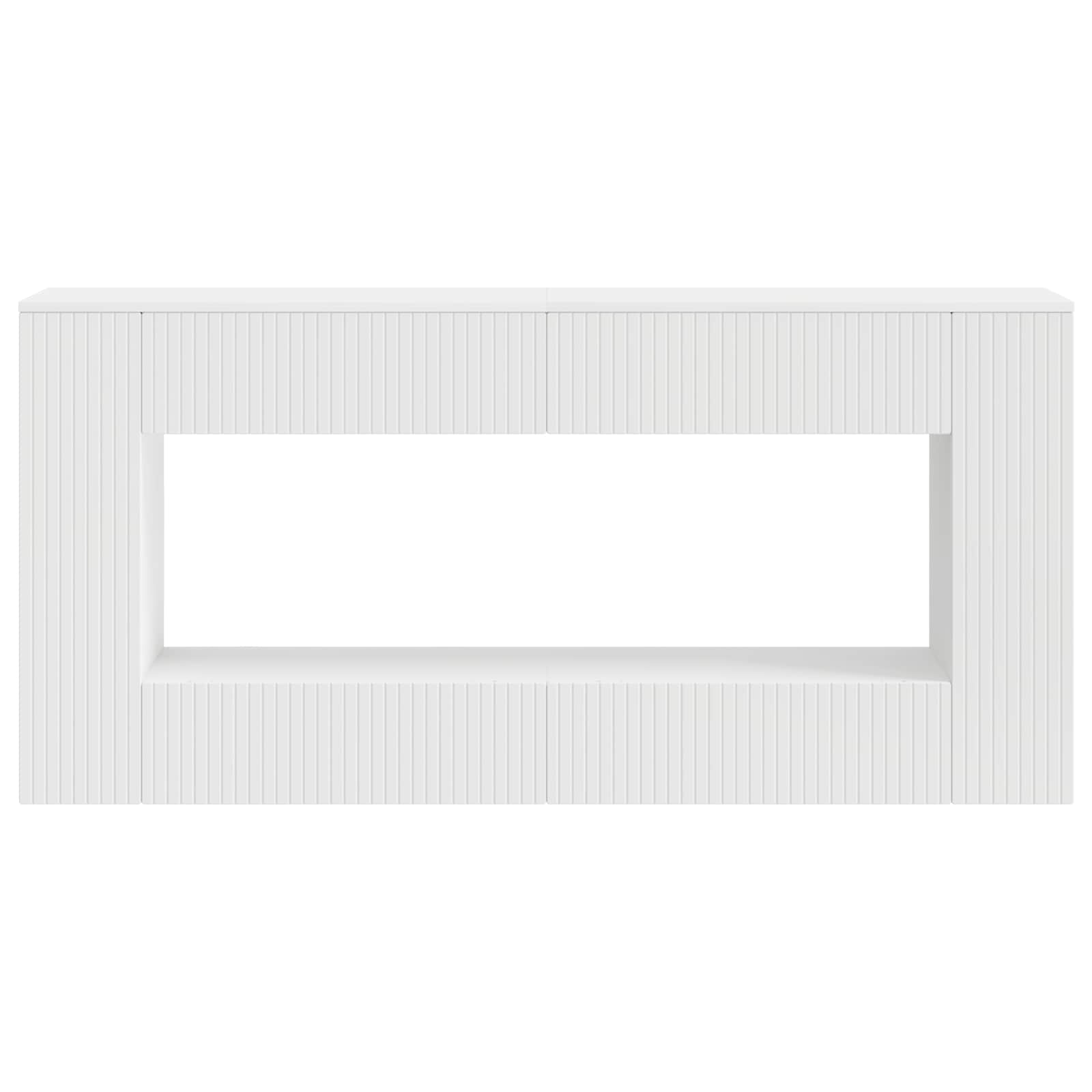 Tää konsolipöytä yhdistää tyylikkäästi käytännöllisyyden ja muodon, mikä tekee siitä täydellisen osan sun kotiympäristöön. Sen moderni, yksinkertainen muotoilu sopii moneen eri sisustustyyliin, olipa se sit käytävässä, olohuoneessa tai toimistossa. Runsaasti säilytystilaa tarjoava pöytä on monikäyttöinen ja suunniteltu niin, että se on sekä käytännöllinen että kaunis, se tuo mukavuutta ja viihdyttää samalla silmää.