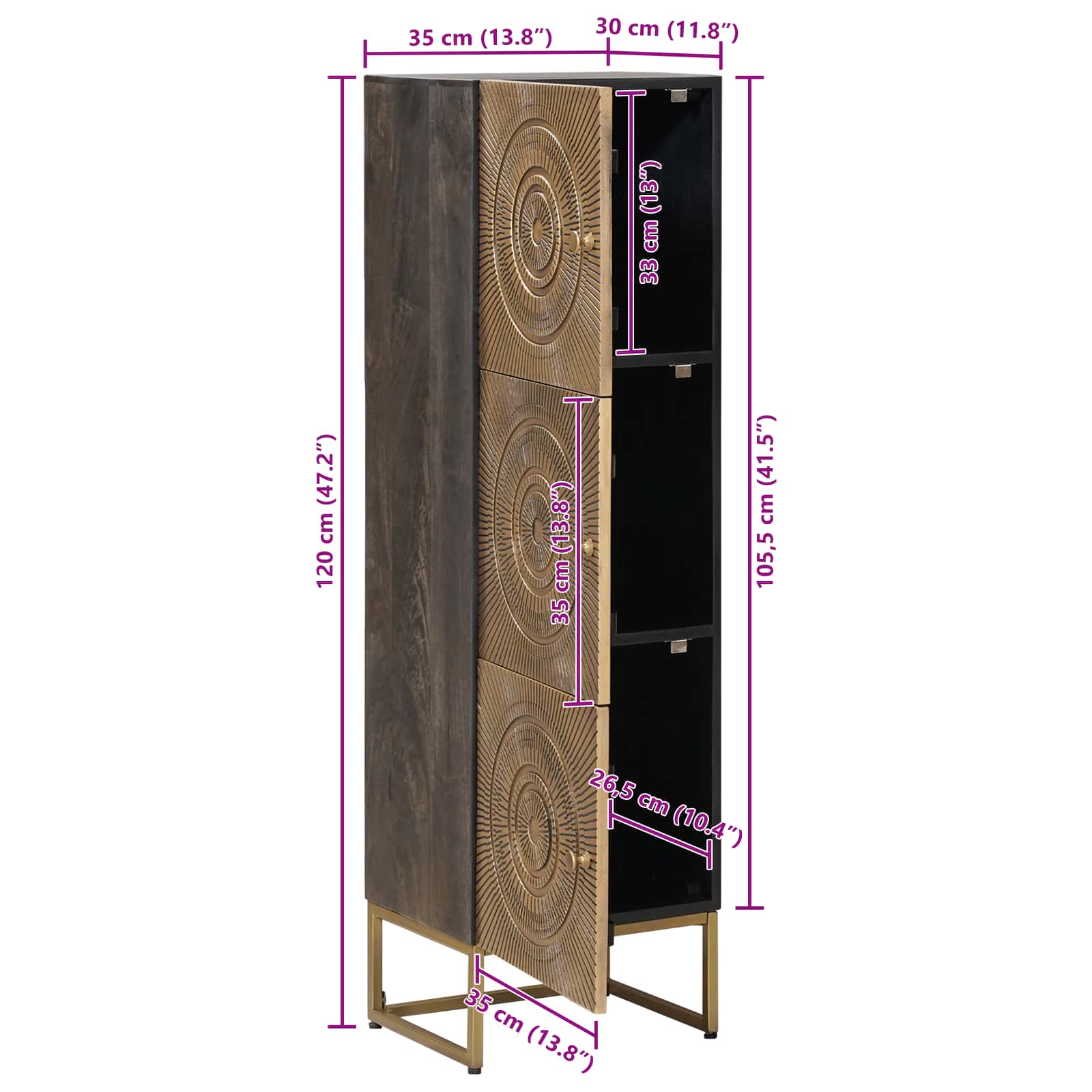Korkea kaappi Messinki 35 x 30 x 120 cm