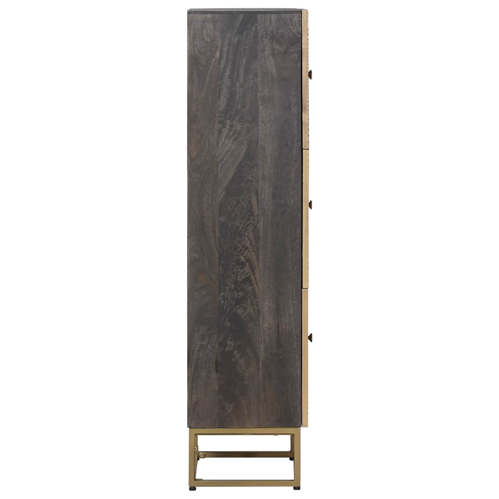 Tämä moderni korkeakaappi on tyylikäs lisä mihin tahansa olohuoneeseen, tuo mukanaan hienon yhdistelmän mangoa ja teknistä puuta. Tyylikäs muotoilu ja kauniit linjat istuvat täydellisesti nykyaikaisiin sisustuksiin, samalla tarjoten runsaasti säilytystilaa eri kotitaloustavaroille. Se sopii erinomaisesti tilojen järjestämiseen ja kaunistamiseen, tuoden käytännöllisyyttä ja tyyliä kotiisi. Korkeakaappi yhdistää hyvän ilmeen käytännölliseen käyttöön.