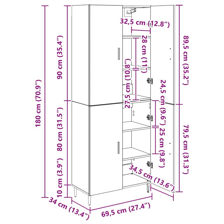 Korkea kaappi Musta tammi 69,5 x 34 x 180 cm