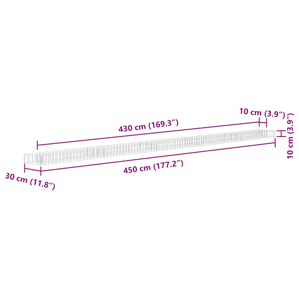 Korotettu kivikori/kukkalaatikko galvanoitu teräs 450x30x10 cm