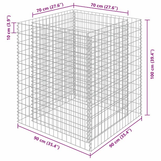 Tukeva kukkalaatikkokehys on suunniteltu täytettäväksi kivillä tai soralla. Se on valmistettu ruostumattomasta ja säänkestävästä galvanoidusta teräksestä, ja se on erittäin vakaa ja kestävä. Verkkoseinämät on valmistettu hitsaamalla yhteen poikittaisia ja pitkittäisiä vaijereita joka yhtymäkohdasta erityisen kestävyyden takaamiseksi.