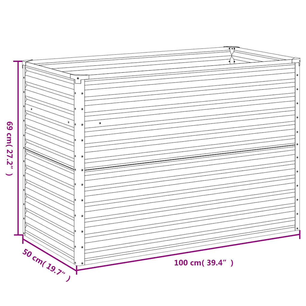 Korotettu kukkalaatikko 100x50x69 cm Corten teräs