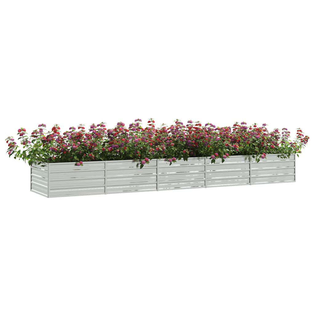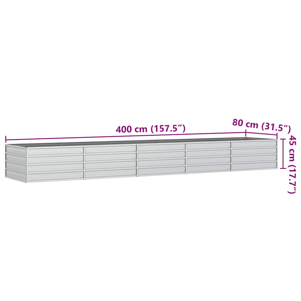 Korotettu kukkalaatikko 400x80x45 cm galvanoitu teräs hopea