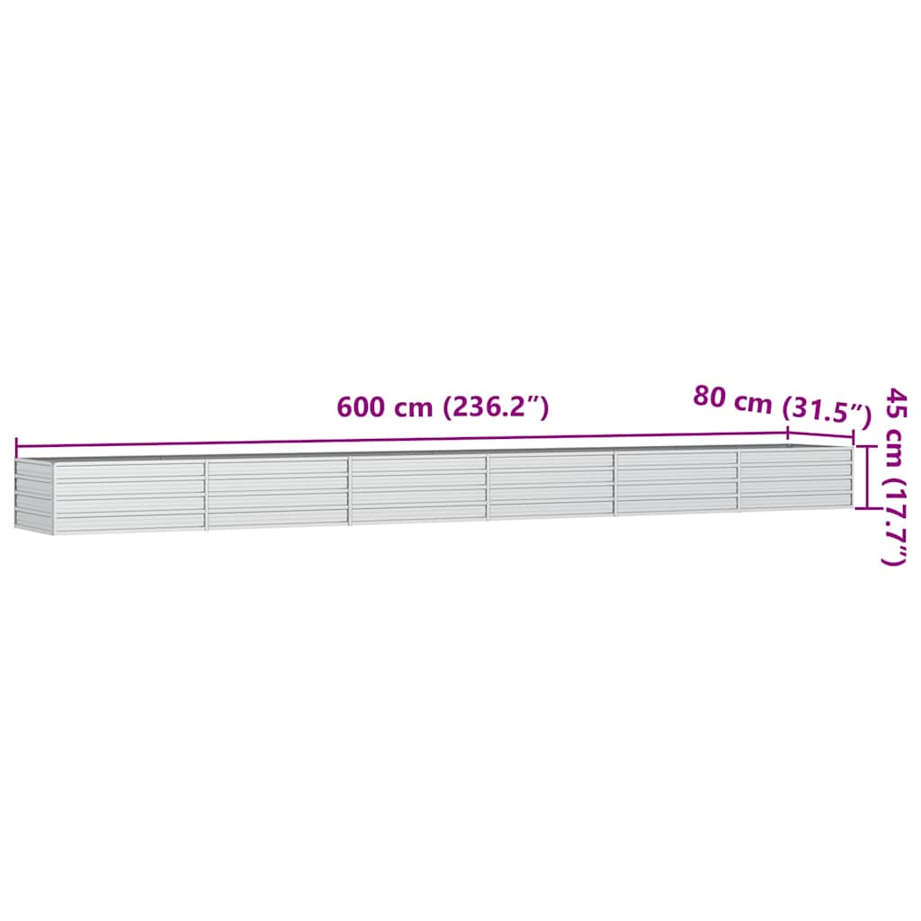 Korotettu kukkalaatikko 600x80x45 cm galvanoitu teräs hopea