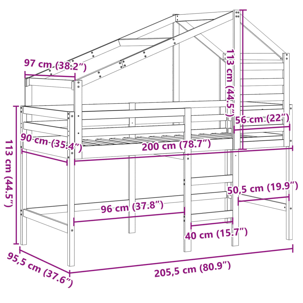 Korotettu sänky katolla vahanruskea 90×200 cm täysi mänty
