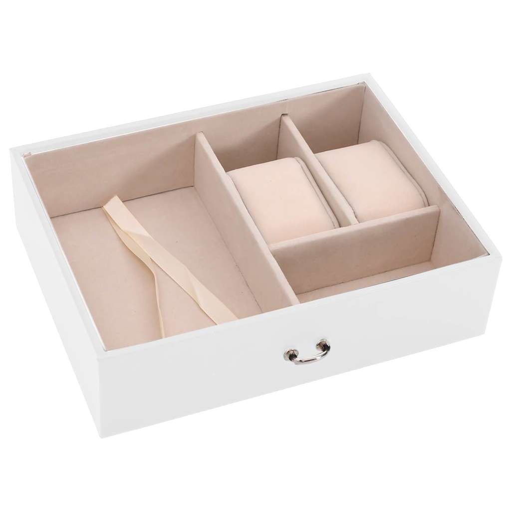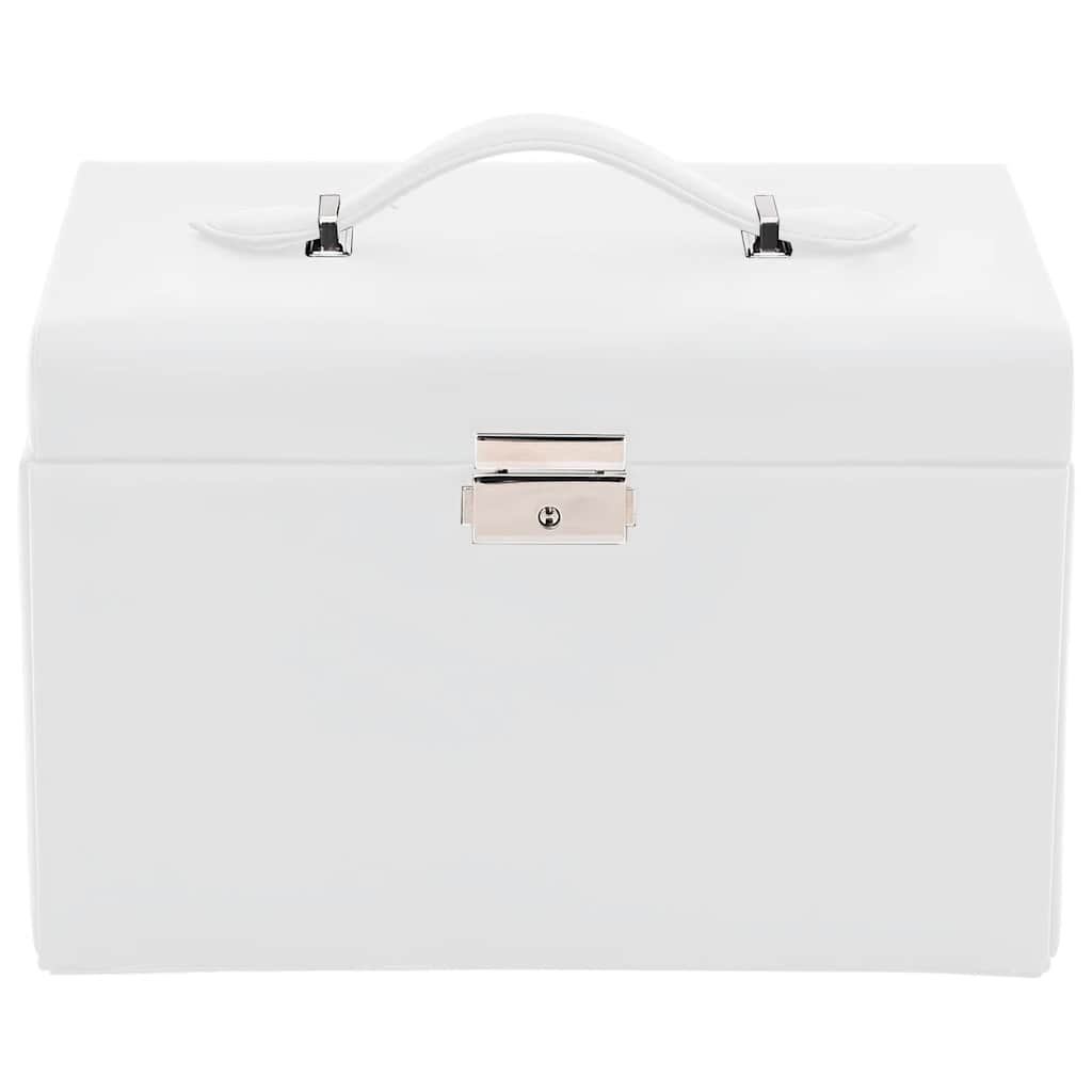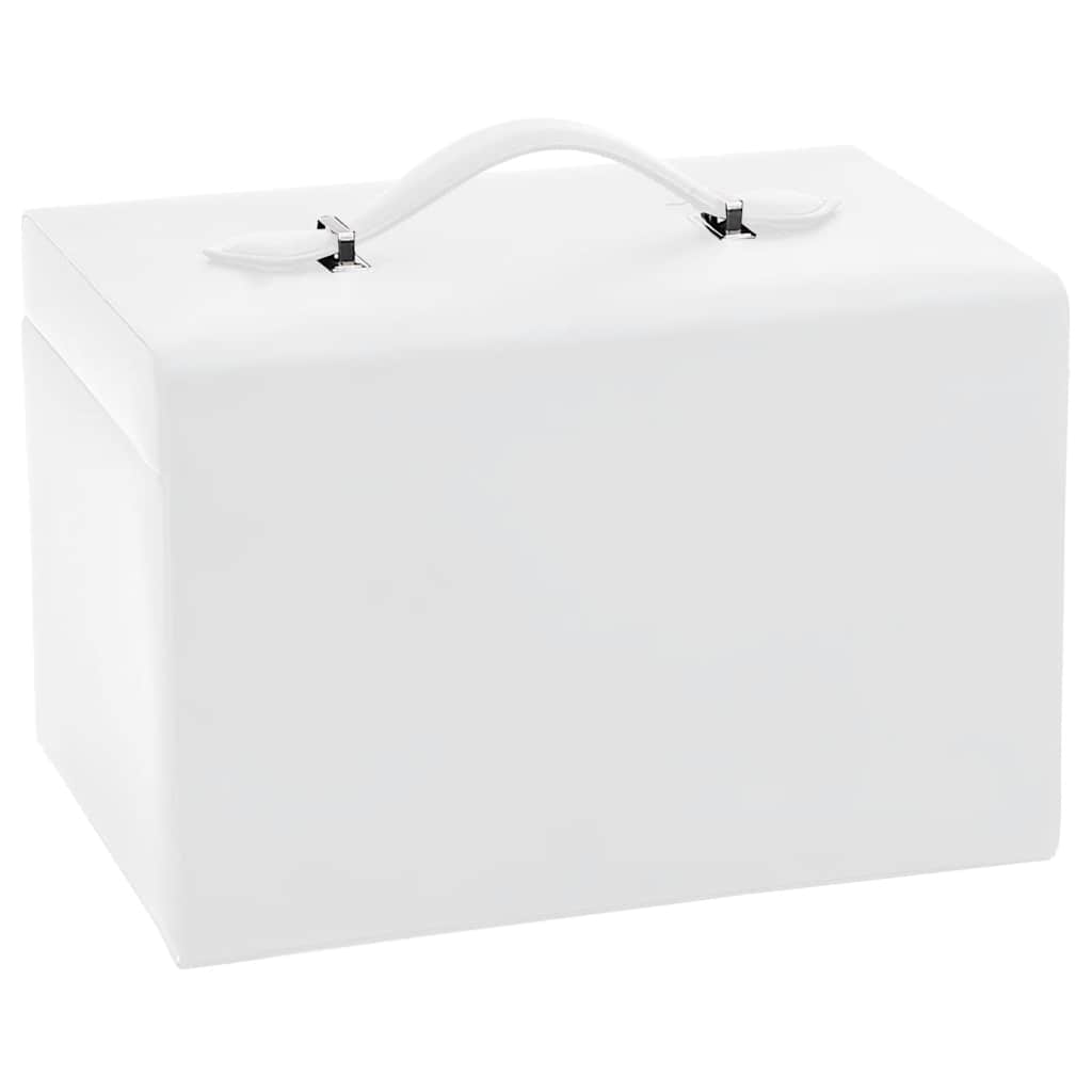 • Käytännöllinen muotoilu: Sisäänrakennettu peili lisää mukavuutta meikin levittämiseen tai ulkonäön tarkistamiseen. Tässä harkitusti suunnitellun kahvan ansiosta tämä korurasia on helppo kuljettaa mukana, joten se on monipuolinen kumppani päivittäisiin rutiineihin tai matkoille. Lisäksi yläkerroksen irrotettavan välilevyn avulla voit muokata säilytystilaa korujen koon ja muodon mukaan.
