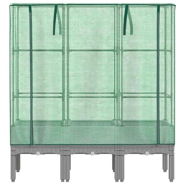 Tämä kasvihuonepeitteellä varustettu korotettu kukkalaatikko tarjoaa runsaasti kasvutilaa tukevan tukikehyksen ansiosta.