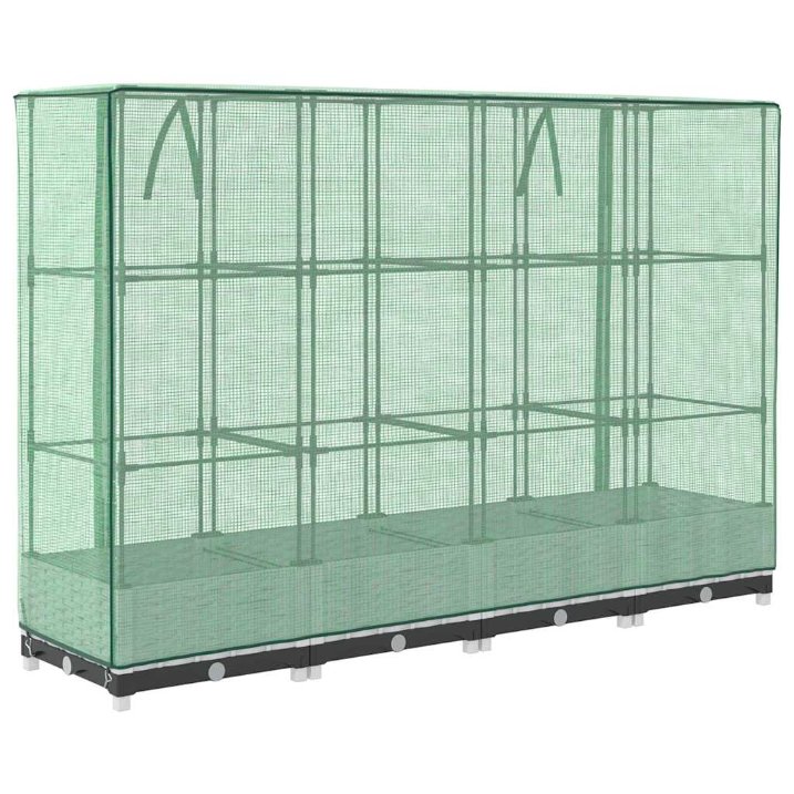 Tämä kasvihuonepeitteellä varustettu korotettu kukkalaatikko tarjoaa runsaasti kasvutilaa tukevan tukikehyksen ansiosta.
