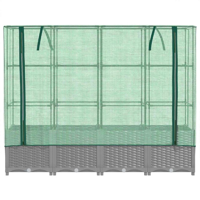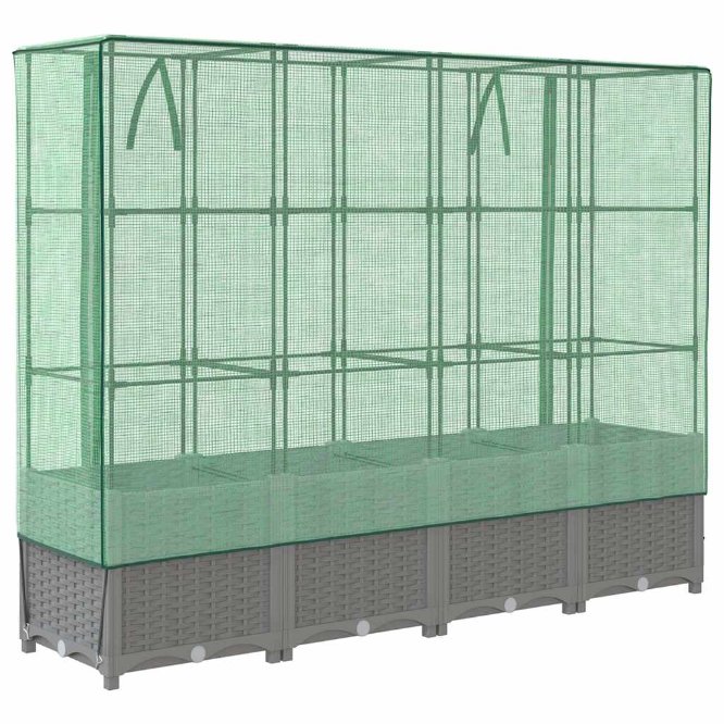 • Toiminnallinen suoja: Korotetussa sängyssä on vettä hylkivä polyeteeni suoja, joka suojaa kasvejasi äärimmäisiltä lämpötiloilta ja pitää hyönteiset, linnut ja pienet eläimet loitolla.