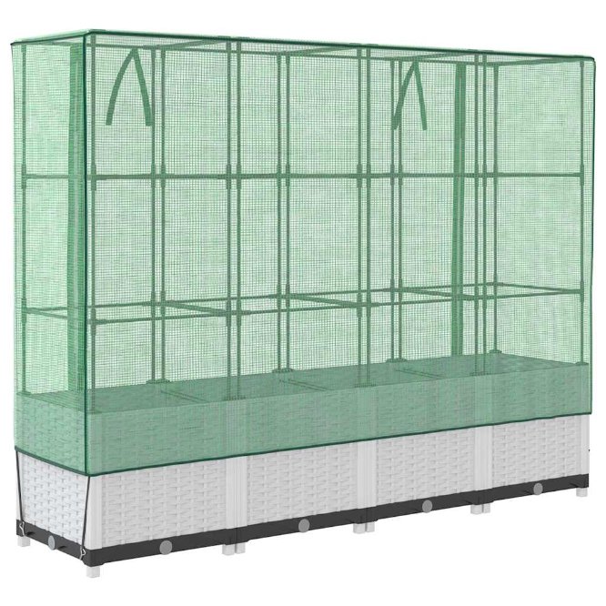 • Toiminnallinen suoja: Korotetussa sängyssä on vettä hylkivä polyeteeni suoja, joka suojaa kasvejasi äärimmäisiltä lämpötiloilta ja pitää hyönteiset, linnut ja pienet eläimet loitolla.