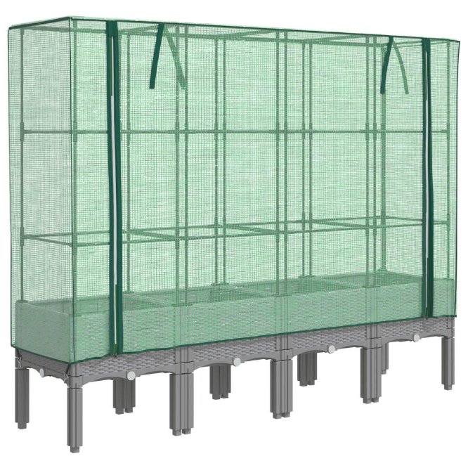 • Toiminnallinen suoja: Korotetussa sängyssä on vettä hylkivä polyeteeni suoja, joka suojaa kasvejasi äärimmäisiltä lämpötiloilta ja pitää hyönteiset, linnut ja pienet eläimet loitolla.
