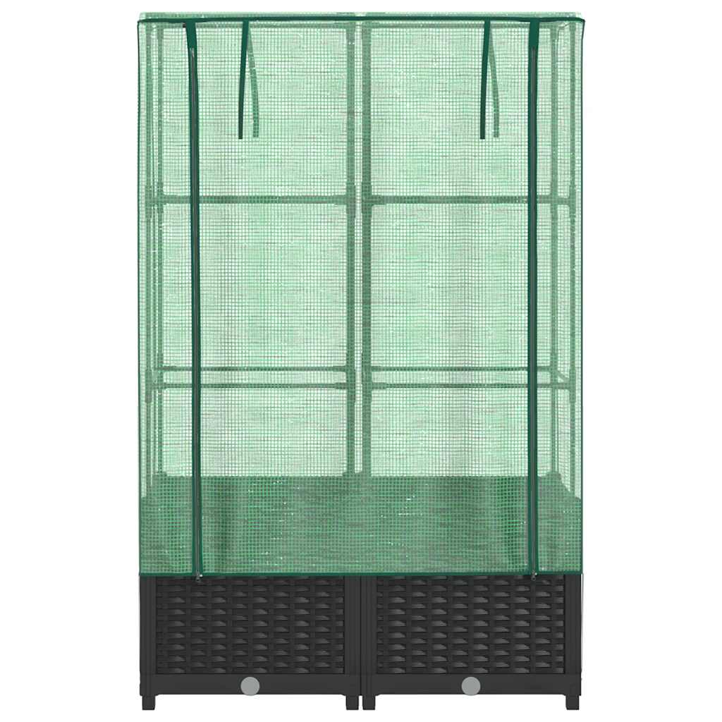 Kukkalaatikko kasvihuonepeitteellä rottinkityyli 80x40x138 cm