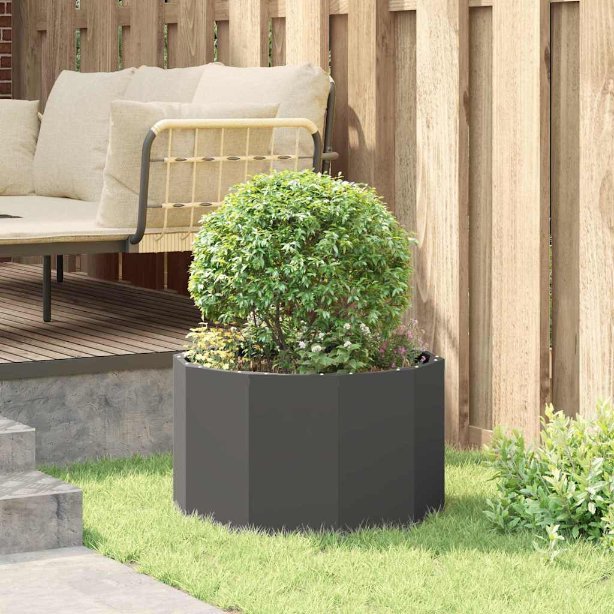 • Teräsrakenteinen: Valmistettu kestävästä teräksestä, joten tämä istutuskauha on tukeva ja kestää huonoja sääolosuhteita. Materiaalit on valittu kestävyyden varmistamiseksi, mikä vähentää huoltotarvetta. Sen moderni muotoilu tuo tyylikkyyttä puutarhaan.