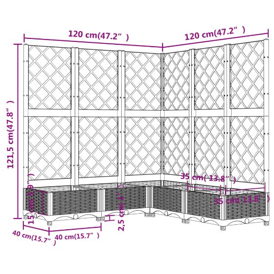 Tämä kukkalaatikko on valmistettu säänkestävästä PP:stä, joten se on kestävä ja tukeva sekä ulkokäyttöön sopiva. Alalaatikkoon mahtuu useita viherkasveja ja kukkia. Sisäänrakennettu säleikkö tarjoaa upean tuen köynnöskasveille, kuten tomaateille, herneille ja ruusuille.
