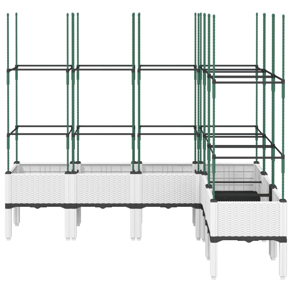 • Käytännöllinen muotoilu: Ihanteellinen pohjakerros auttaa säilyttämään kosteuden ja mahdollistaa helpon vedenpoiston. Lisäksi integroitu säleikkö tarjoaa mahtavan tuen kasvaville köynnöskasveille, kuten tomaateille, herneille ja ruusuille.