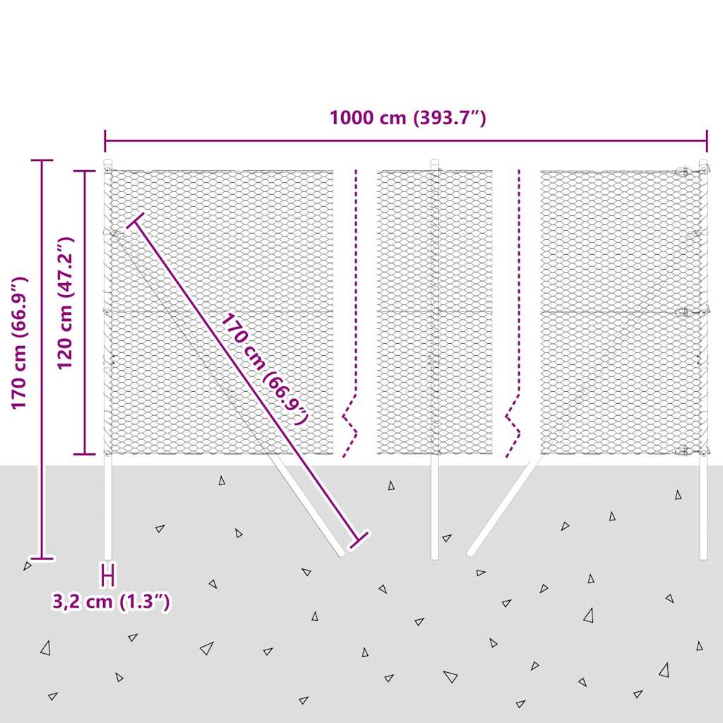 • Kattava Paketti: Tämä aitaussarja sisältää kaiken tarvittavan, mukaan lukien 2 aitapylvästä ja raiteet, verkkorullan, sitomislangan ja pylväiden pidikkeet, joten voit onnistua asennuksessa.