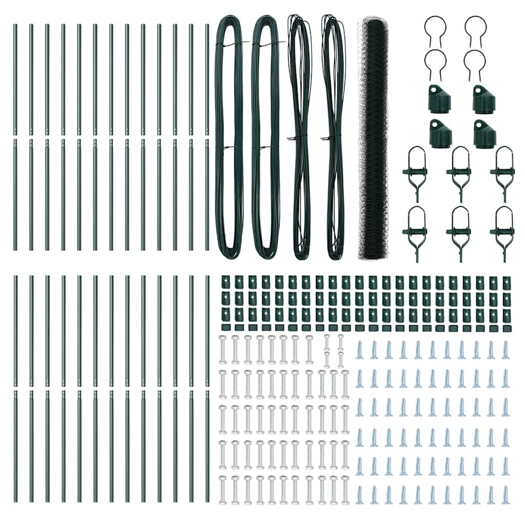 Kuusikulma-aita Vihreä 1.5×50 m Teräs, Aitatolpat 13 kpl Vihreä Ø32 mm 200 cm Galvanoitu teräs