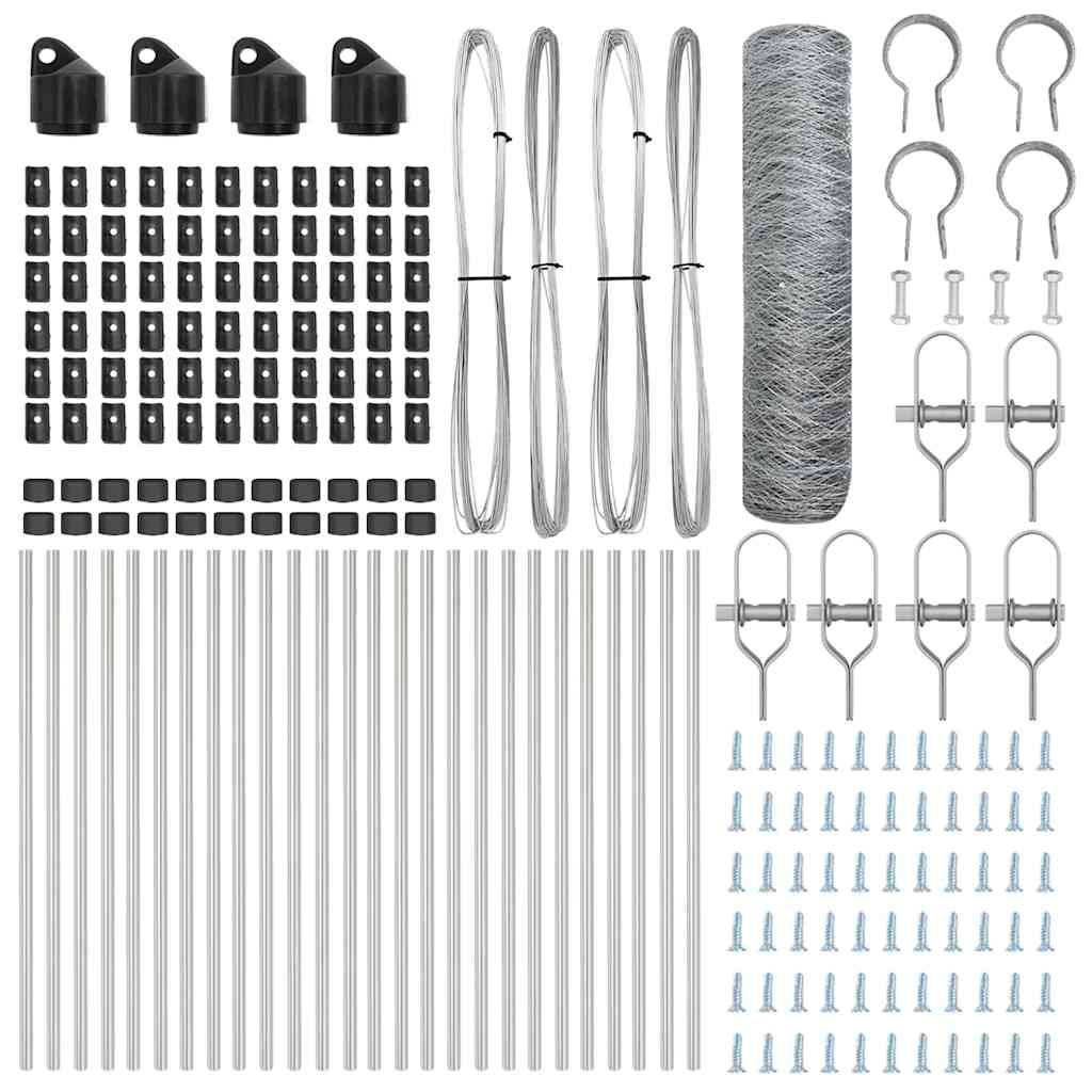 • Kattava Paketti: Mukana kaikki, mitä tarvitset, kuten aitaverkko, tolpat, vaijerisäätimet ja kiinnitysklipit vaivattomaan asentamiseen.
