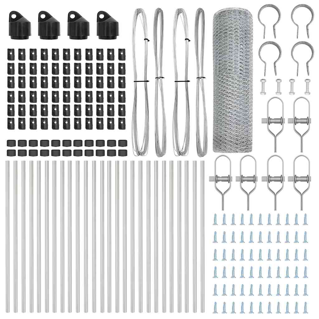 • Täydellinen Paketti: Tämä aitaratkaisu sisältää kaiken tarvitsemasi, mukaan lukien verkot, aitapylväät, piuhat ja kiinnityskappaleet helppoa kokoamista varten.