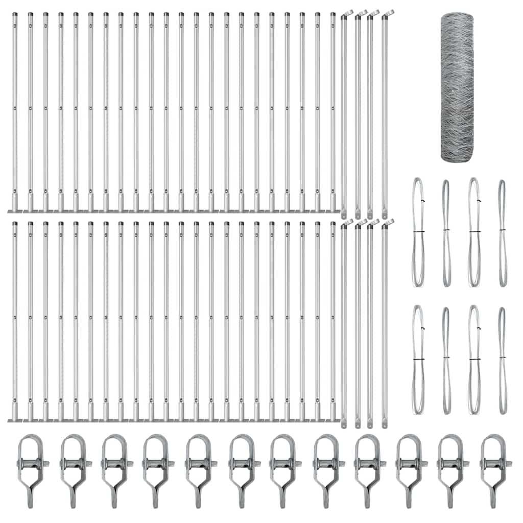 Kuusikulmainen aita 0,8×100 m Galvanoitu teräs, Aitatolpat jalustalevyillä 13 kpl Ø32mm 90cm Galvanoitu teräs