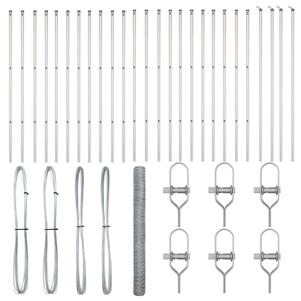 Kuusikulmainen Aita 1.6×50 m Galvanoitu Teräs, Aitapylväät 13 kpl Ø32 mm 210 cm Galvanoitu Teräs