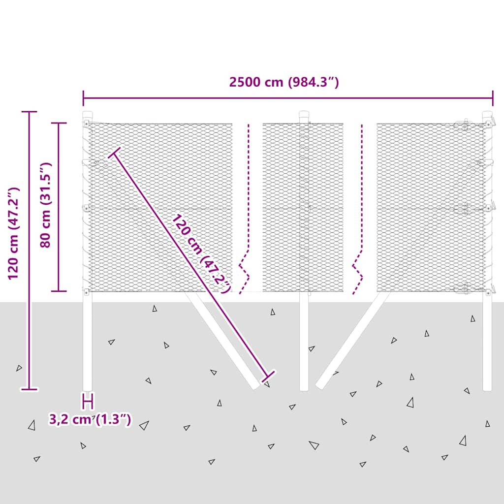 Kuusikulmainen Aita Harmaa 0.8×25 m Teräs, Aita Posts 13 kpl Harmaa Ø32 mm 120 cm Galvanoitu Teräs