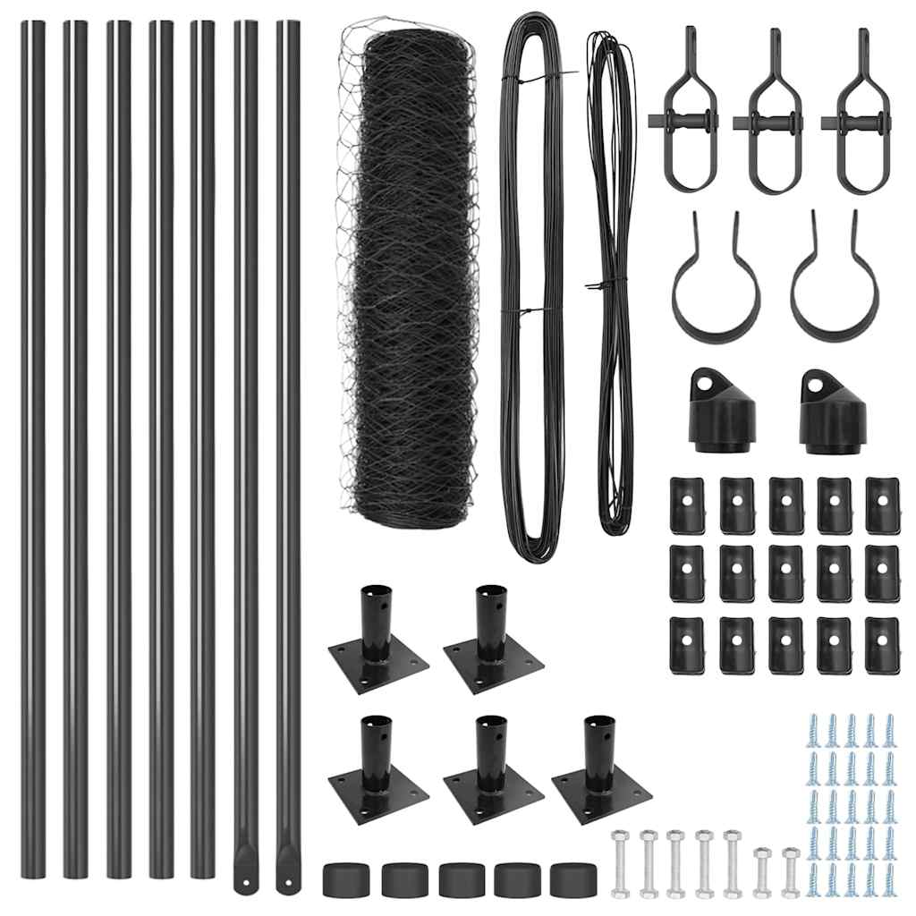• Kestävä materiaali: Valmistettu galvanoidusta teräksestä, tämä aitaussarja on suunniteltu kestämään, tarjoten ensiluokkaista suojaa ulkotiloillesi. Se on UV-kestävä ja vedenpitävä, joten se sopii erinomaisesti kaikkiin sääolosuhteisiin.