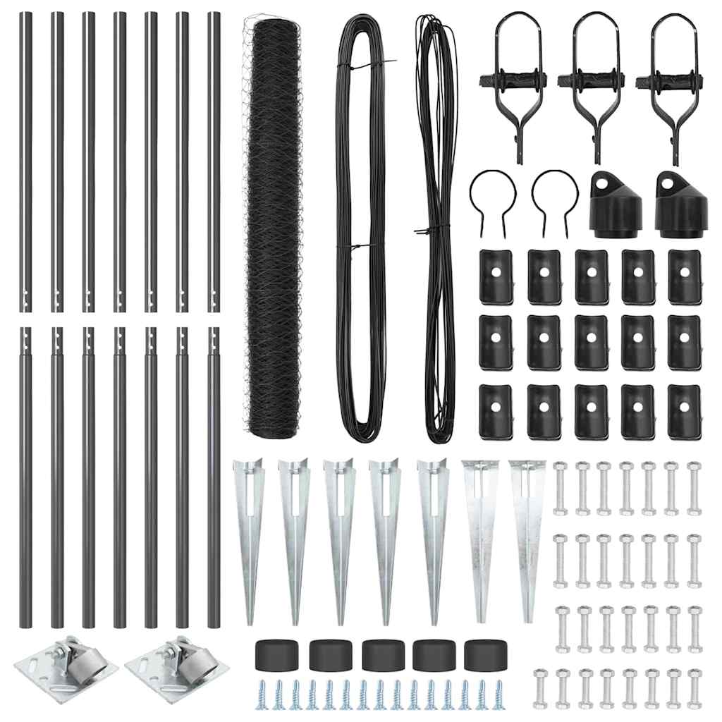 • Delivery Contains: 2 fence rolls, 5 stakes, 2 rolls of wire, 5 spike anchors