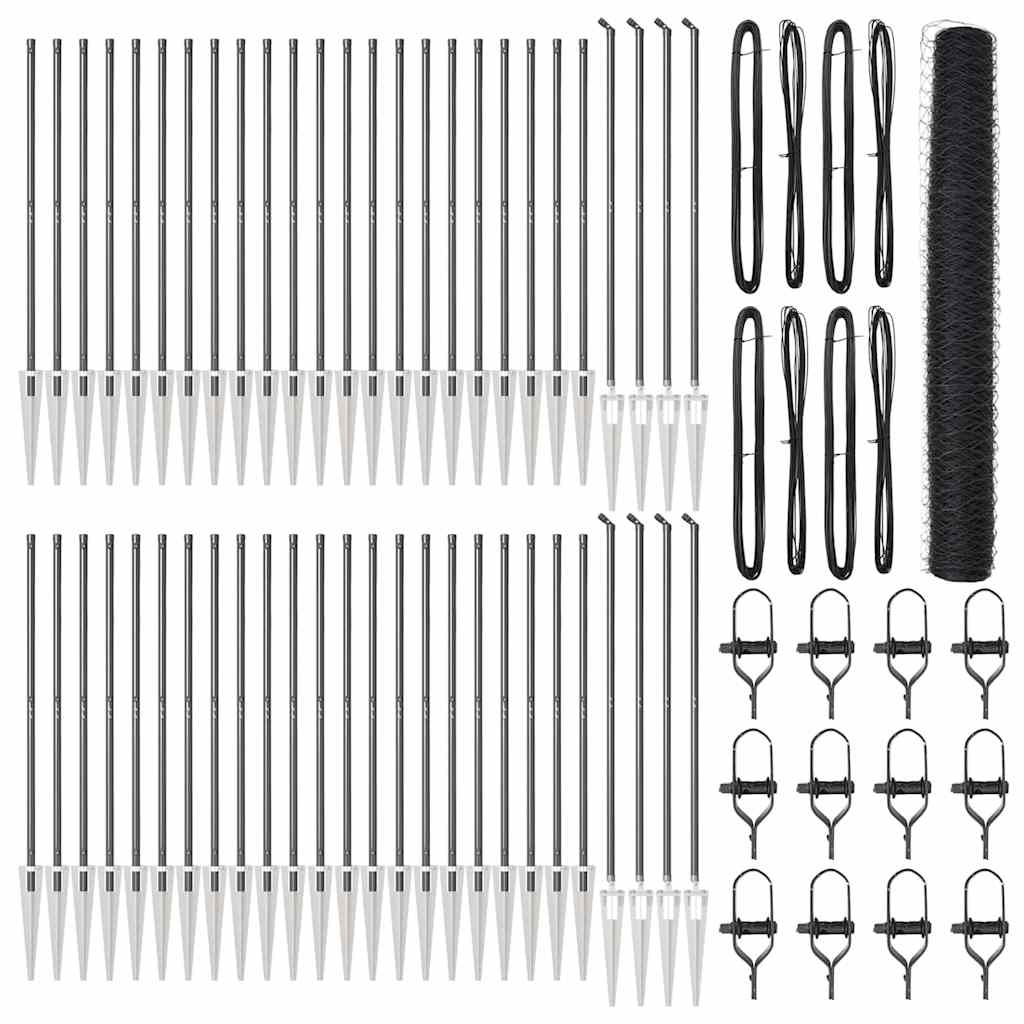 • Täydellinen Sarja: Sarja sisältää kaikki tarvittavat osat, kuten aitapilarit, verkon ja teräspäät, varmistaa vaivattoman asennuksen.