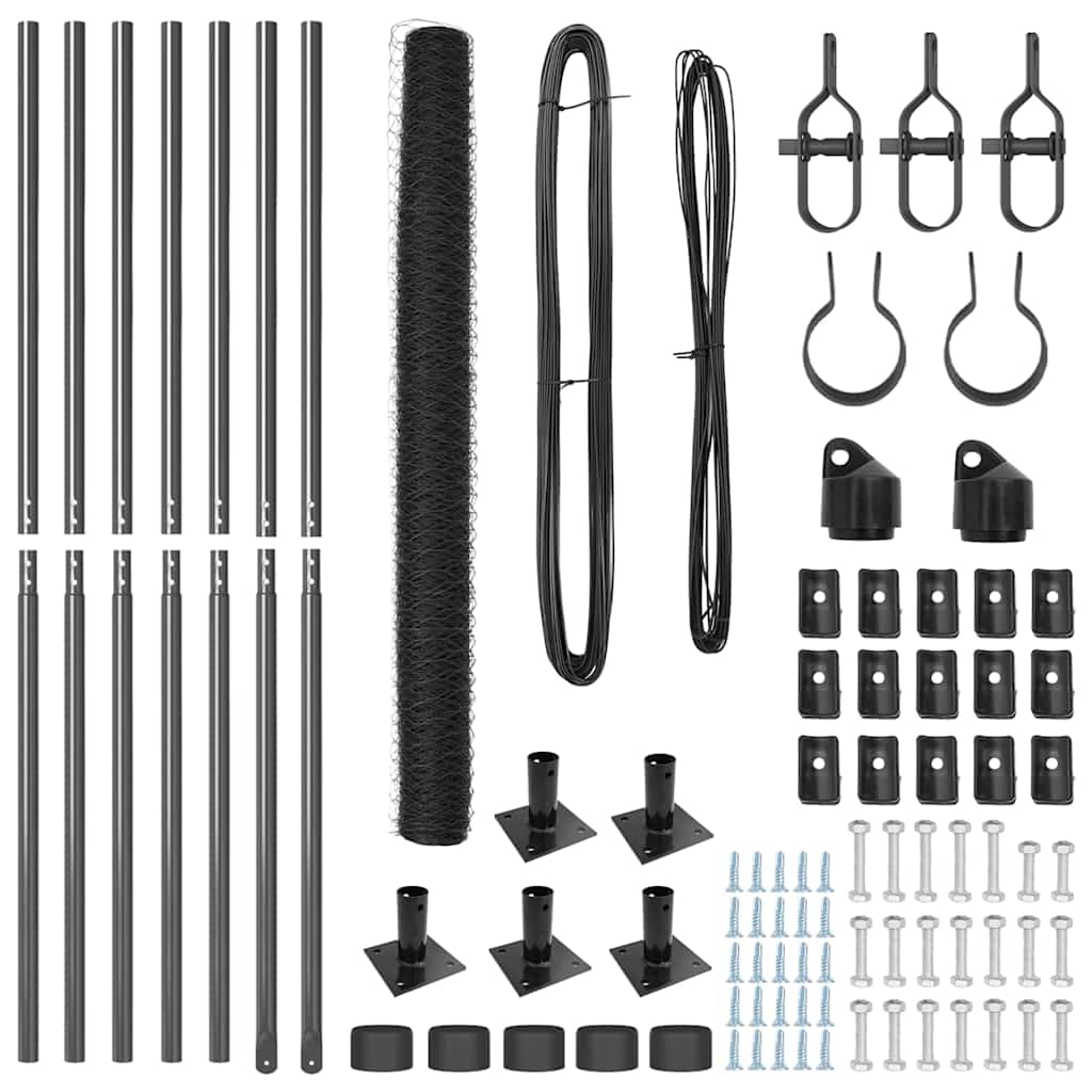 Kuusikulmainen Aita Harmaa 1.4×10 m Teräs, Aita Postit Peruslevyillä 7 kpl Ø32mm 78,5cm Galvanoitu Teräs