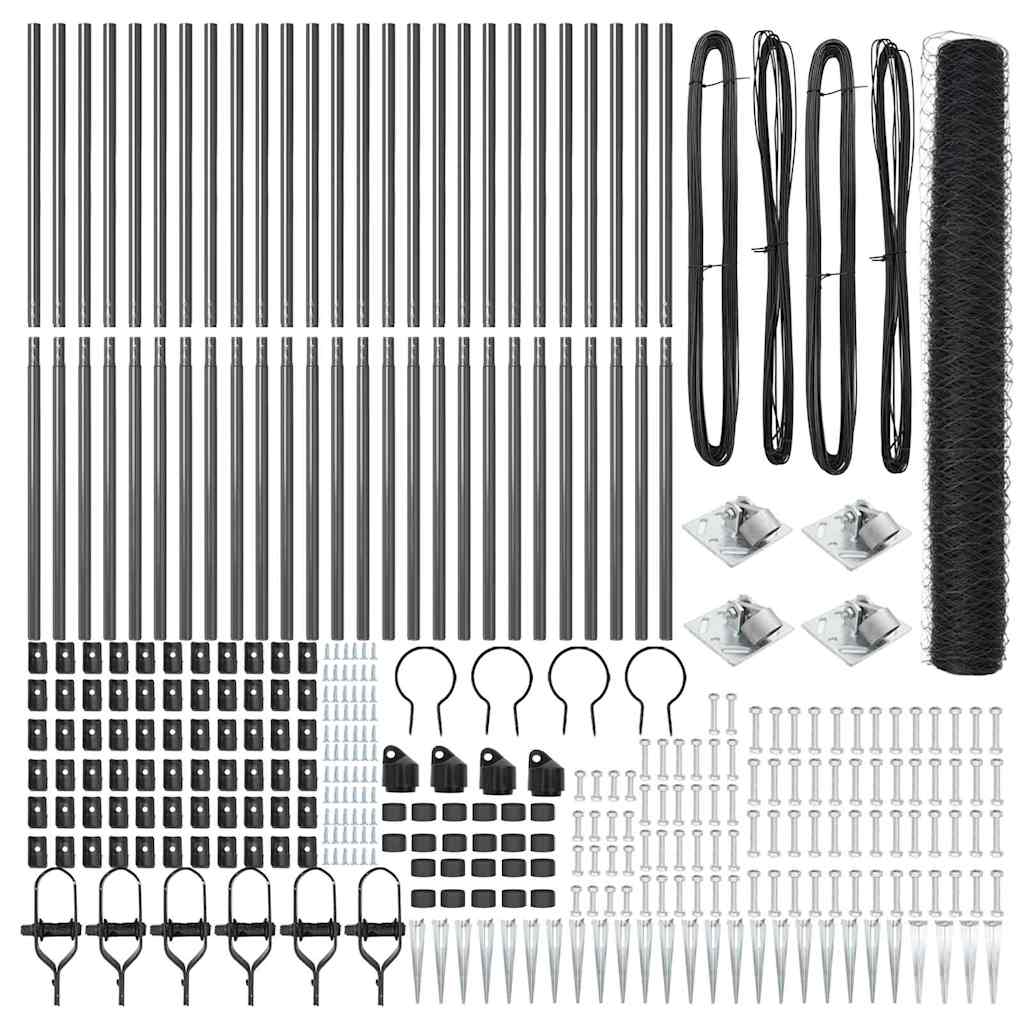 Kuusikulmainen aita Harmaa 1.4×50 m Teräs, Aitapylväät piikillä 13 kpl Ø32 mm 160 cm Galvanoitu teräs