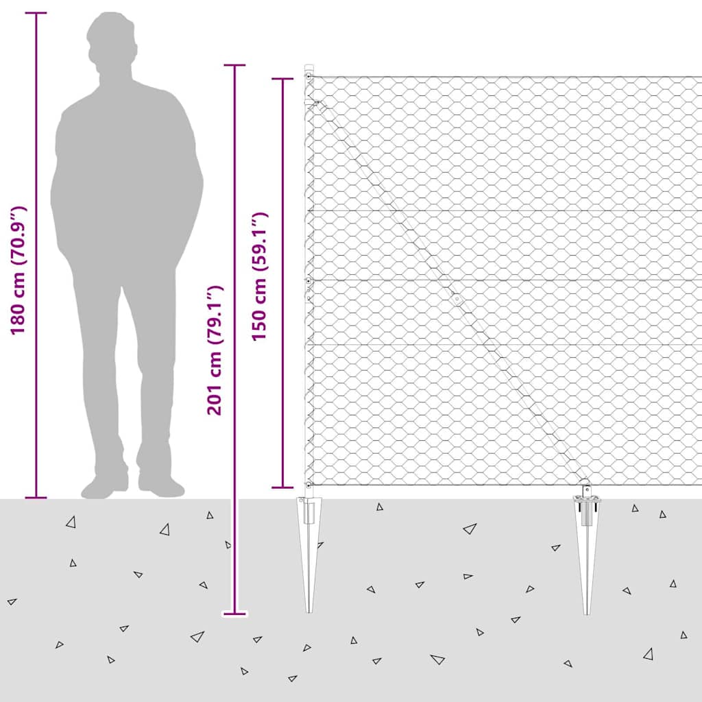 Kuusikulmainen Aita Harmaa 1.5×10 m Teräs, Aitatolpat Piikillä 7 kpl Ø32 mm 170 cm Galvanoitu Teräs