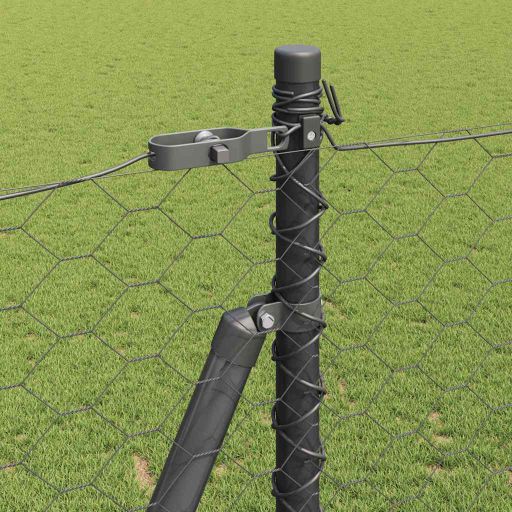 Kuusikulmainen aita Harmaa 1.5×100 m Teräs, Aita-pilarit perustuksilla 13 kpl Ø32mm 83.5cm Galvanoitu teräs