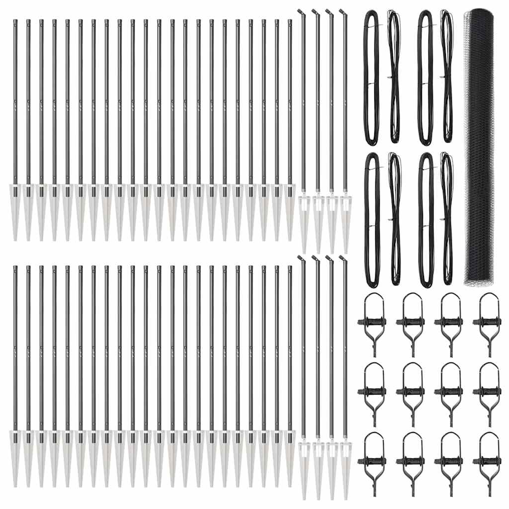 • Kattava Paketti: Tämä tulee täynnä kaikkea, mitä tarvitset sen itse asentamiseen: aitapylväät, verkko, piikit ja kiinnikkeet nopeaa asennusta varten.