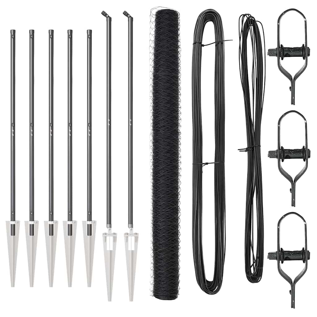 kuusikulmainen aita harmaa 1.6×10 m terästä, Aitapylväät piikillä 7 kpl Ø32 mm 180 cm Galvanoitu teräs