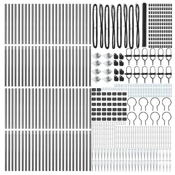 • Kattava Setti: Tämä ulkosaldo sisältää kaiken, mitä tarvitset kokoamiseen, kuten aitapylväät, tiheysrullan ja piikkitukit sujuvaa asennusta varten.