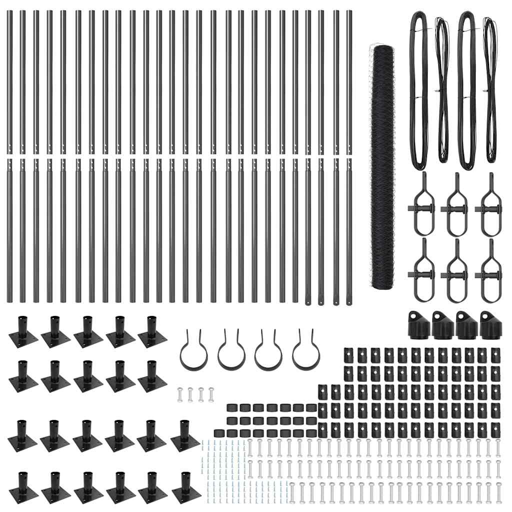 Kuusikulmainen aita Harmaa 1.6×50 m Teräs, Aitapylväät pohjalevyillä 13 kpl Ø32mm 88.5cm Galvanoitu teräs
