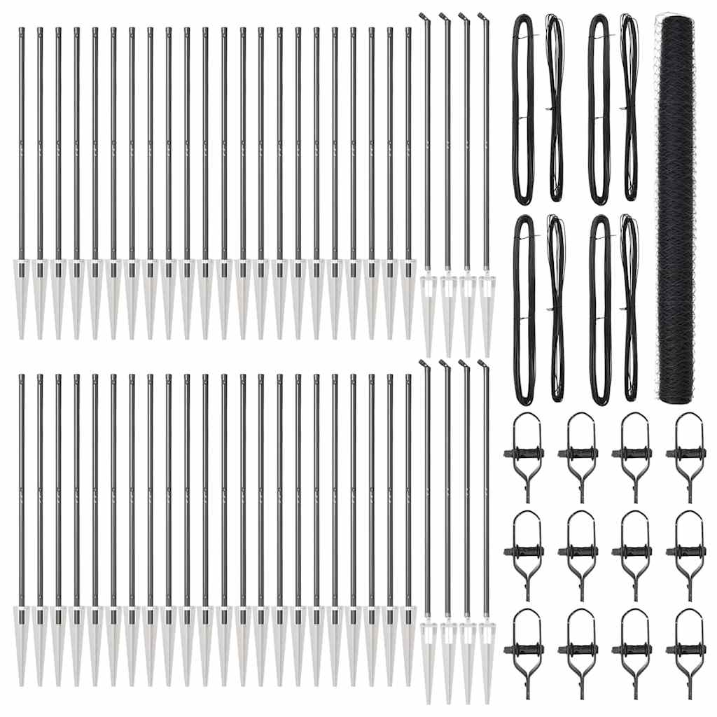 Kuusikulmainen Aita Harmaa 1,5×100 m Teräs, Aitapylväät Piikkikiinnityksellä 13 kpl Ø32 mm 170 cm Galvanoitu Teräs