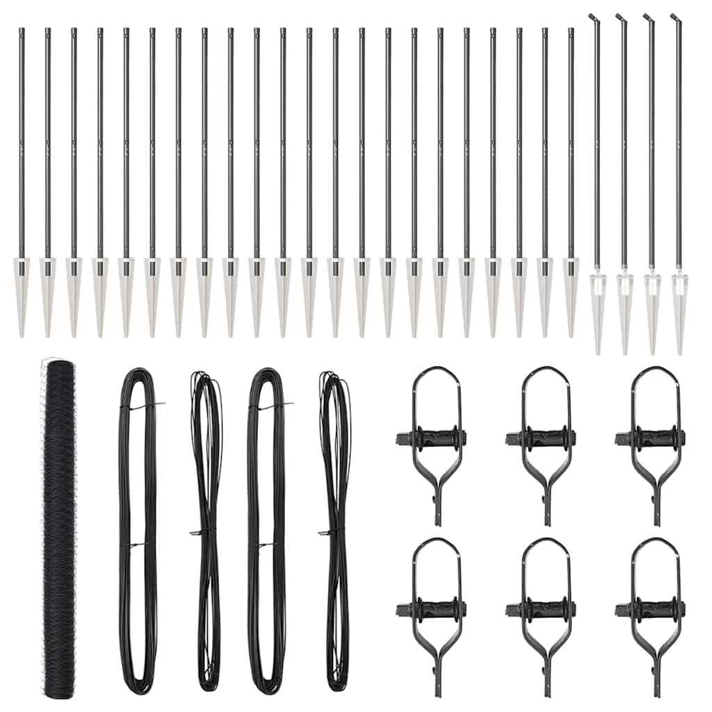• Kestävä materiaali: Tämä aitaussetti on valmistettu kestävistä UV-kestävistä jauhemaalatusta metallista, joten se kestää ulkoisia olosuhteita varmistaen pitkäaikaisen suojan alueillesi.