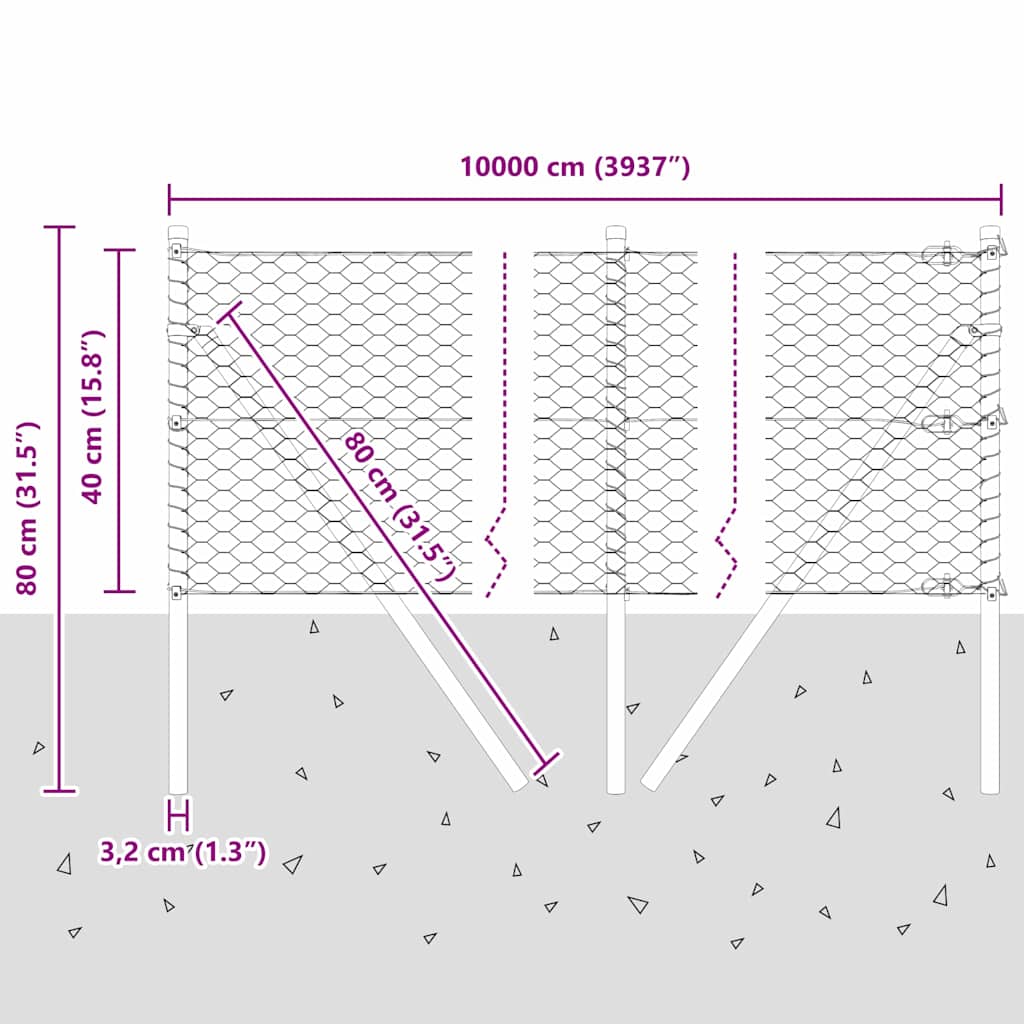 Kuusikulmainen Aita Vihreä 0.4×100 m Teräs, Aitapyykit 13 kpl Vihreä Ø32 mm 80 cm Galvanoitu Teräs