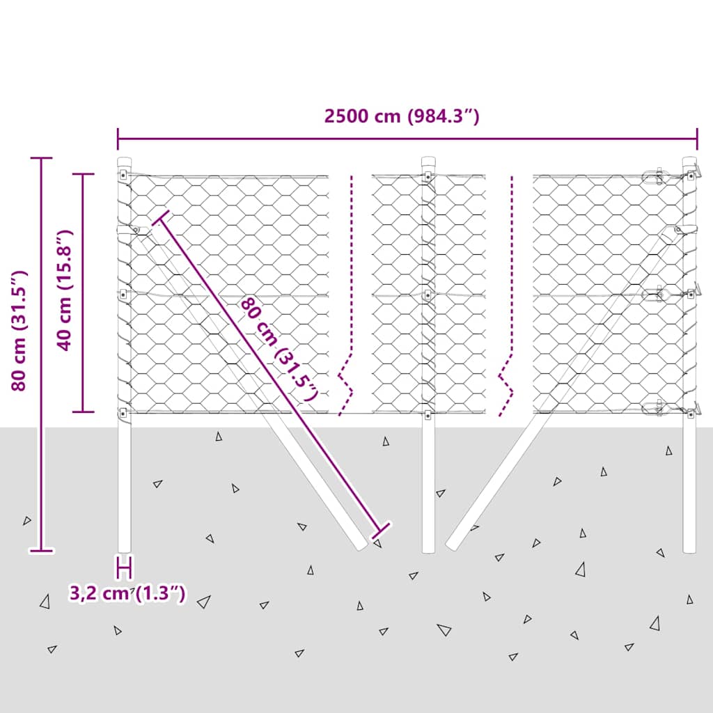Kuusikulmainen Aita Vihreä 0.4×25 m Teräs, Aitaruuvit 13 kpl Vihreä Ø32 mm 80 cm Galvanoitu teräs