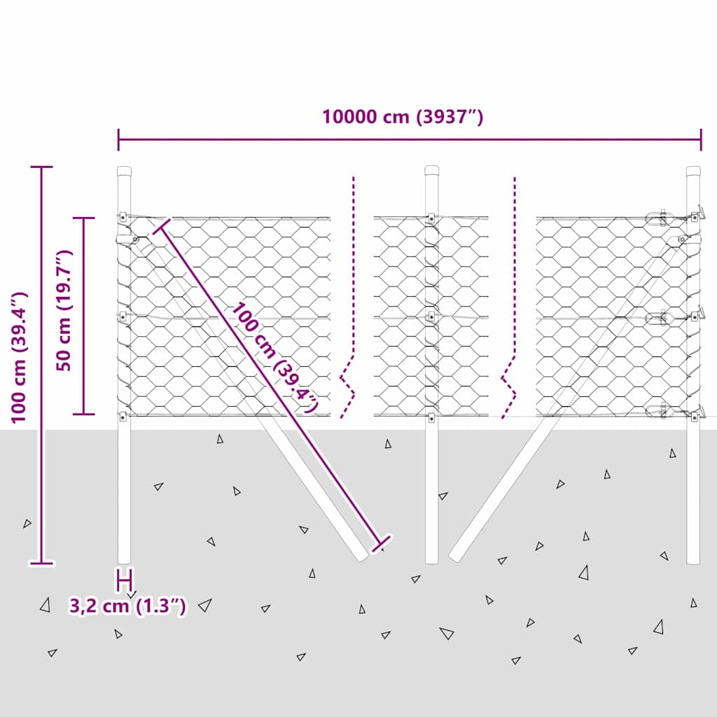 Kuusikulmainen Aita Vihreä 0.5×100 m Teräs, Aitatolpat 13 kpl Vihreä Ø32 mm 100 cm Galvanoitu Teräs
