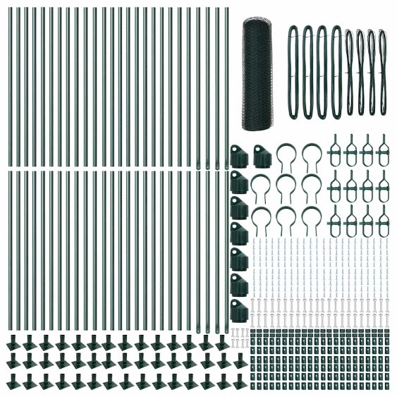 Kuusikulmainen Aita Vihreä 0.8×100 m Teräs, Aita Postit Kannan Levyt 13 kpl Ø32mm 90cm Galvanoitu Teräs