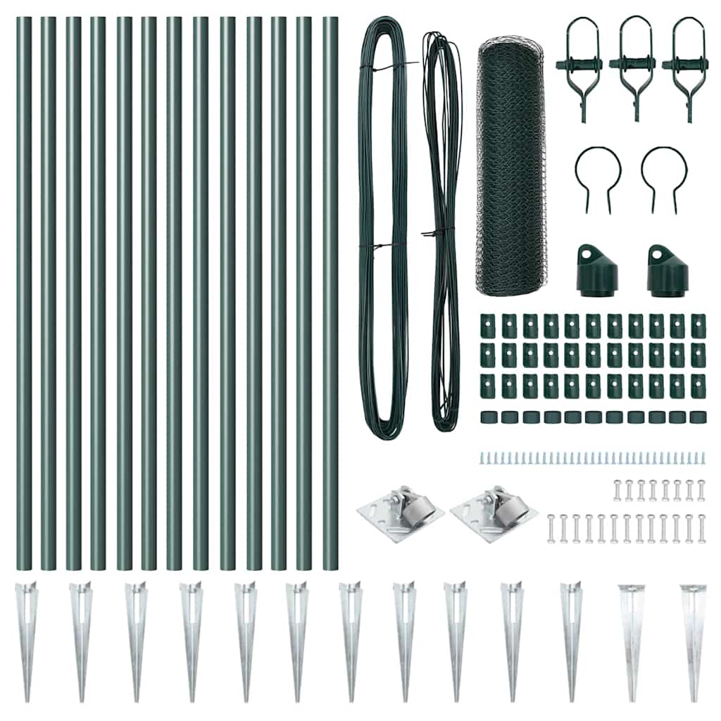 Kuusikulmainen Aita Vihreä 0.8×25 m Teräs, Aitarakenteet Kolmella Piikillä 13 kpl Ø32 mm 100 cm Galvanoitu Teräs