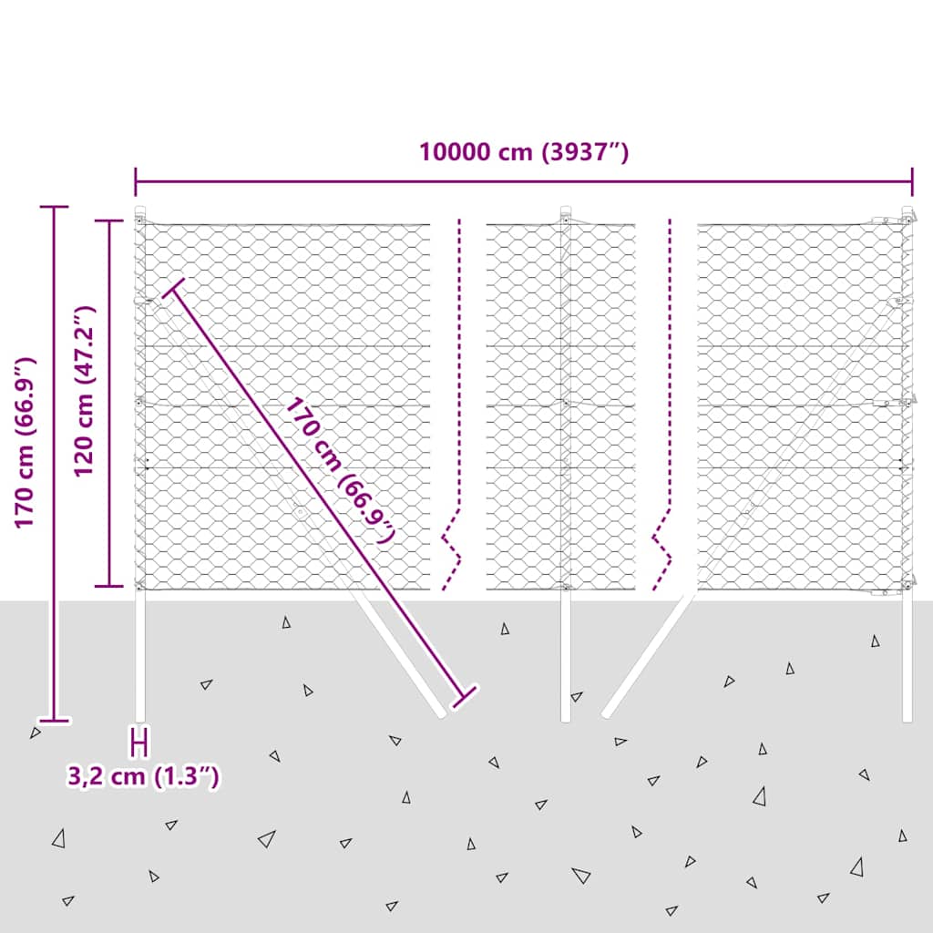 kuusikulmainen aita Vihreä 1.2×100 m Teräs, Aitatolpat 13 kpl Vihreä Ø32 mm 170 cm Galvanoitu teräs