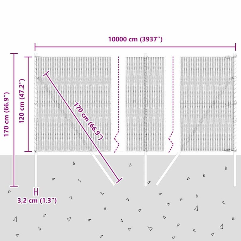 • Vankka rakenne: Tämä aita on valmistettu galvanoidusta teräksestä, ja se on suunniteltu pitämään raskaammat esineet turvassa ja tarjoamaan luotettavuutta ja vakautta ulkona.