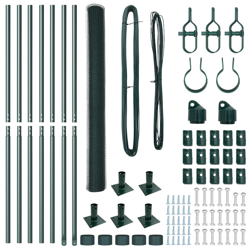 Kuusikulmainen aita Vihreä 1.4×10 m Teräs, Aitapylväät jalustapaloilla 7 kpl Ø32mm 78.5cm Galvanoitu Teräs